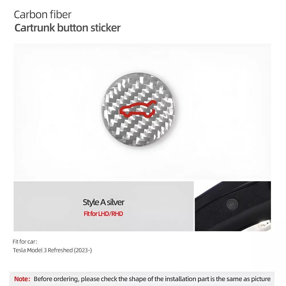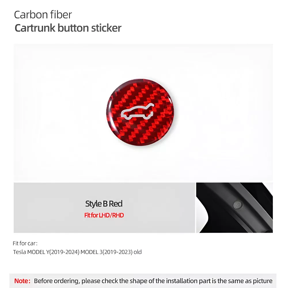 Upgrade your Tesla Model Y or Model 3 with this sleek Carbon Fiber Rear Trunk Switch Button Trim. Designed for a perfect fit, this premium accessory not only enhances your car’s sporty aesthetic but also provides protection for the original trunk button. Crafted with high-performance carbon fiber—just like the material found in supercars—this trim adds a touch of sophistication and durability to your vehicle’s interior.