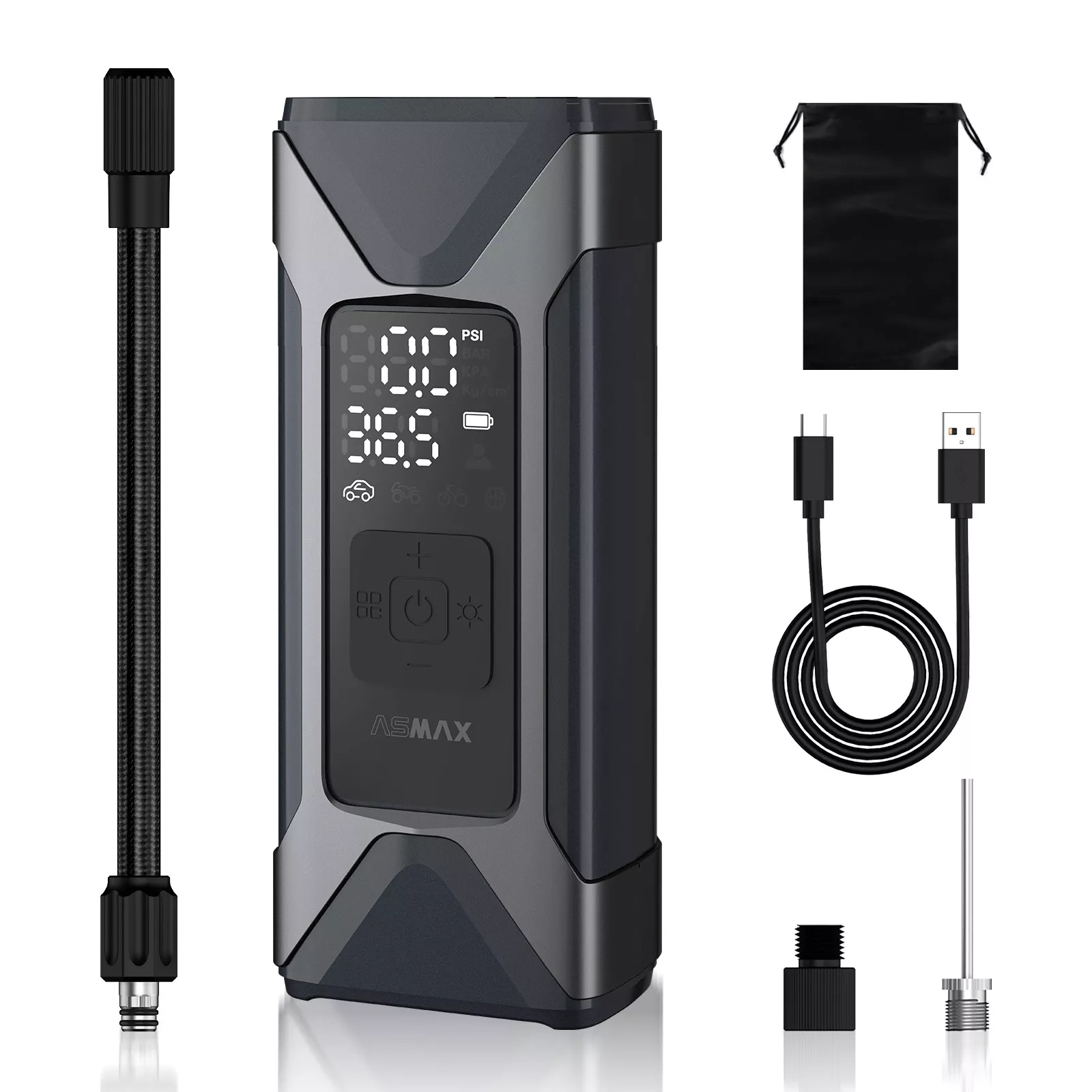 Equipped with a high-performance motor, this smart air pump inflates your Tesla’s tires at an impressive rate of 26L/min. The advanced auto-stop function prevents overinflation, giving you peace of mind with every use. Switch between multiple pressure units with ease and monitor real-time pressure levels on the bright LED display.