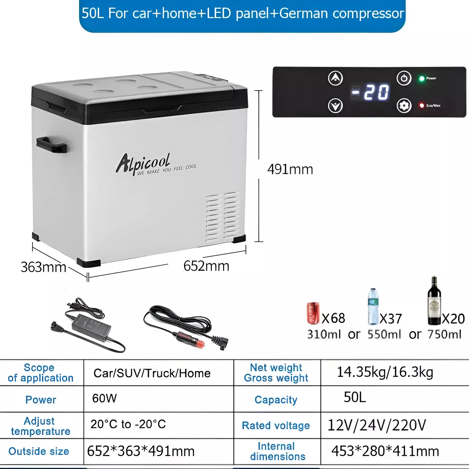 Perfect for Any Adventure This fridge is not just for car trips—its portability makes it a great companion for tailgating, work vehicles, camping, or even as a second fridge at home. With ergonomic handles and built-in wheels, it’s easy to move around, and the spacious, well-organized interior keeps everything from drinks to snacks neatly stored and easy to access. Its partitioned layout lets you separate frozen foods from chilled items for optimal organization and convenience.