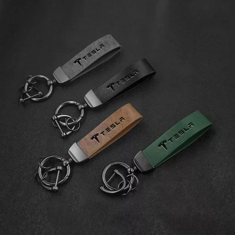 Premium Metal Leather Keychain for Tesla Model 3 Y S X Roadster Cybertruck