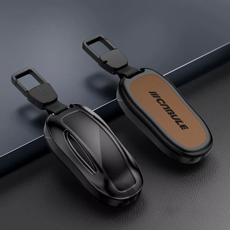 Premium Zinc Alloy & Leather Key Fob Cover for Tesla Model 3/S/Y – Smart Protection