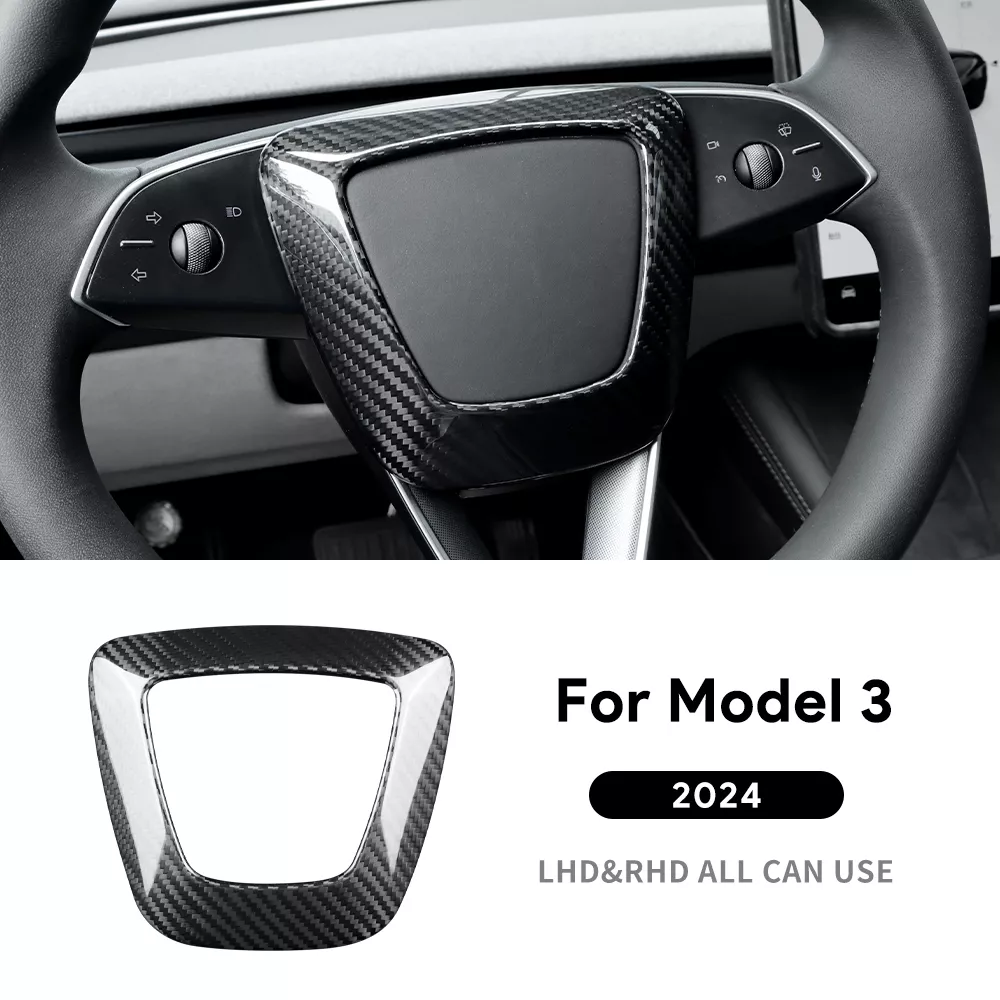 Transform the look and feel of your Tesla Model 3 with this Real Hard Carbon Fiber Steering Wheel Frame Cover. Designed specifically for the 2024 Highland model, this high-quality carbon fiber trim adds a sleek, modern touch to your car’s interior. It’s not just about looks – it’s about protection and durability too. Crafted from 100% genuine carbon fiber, this accessory is built to withstand the rigors of daily driving while elevating your Tesla’s aesthetic. Whether you’re looking to enhance your car’s style or safeguard its interior from wear and tear, this steering wheel frame cover is a must-have addition.